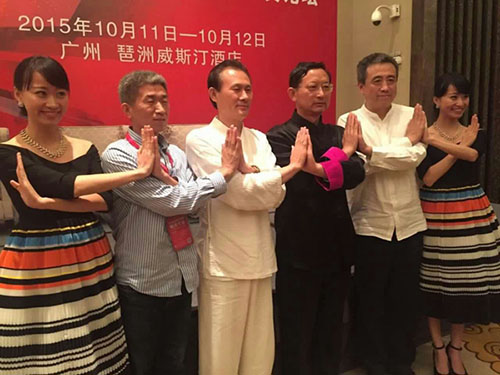 2015.10.12日中国国际周易联合会会长国际风水第一人北京大学大健康产业发展课题组总顾问巨天中风水大师北京大学大健康产业发展课题组组长生命驾校国际健康产业联合会彭措主席在广州《2015ChinaFit健康营养与素食论坛》上,与众悲愿人士达成素食产业联盟。