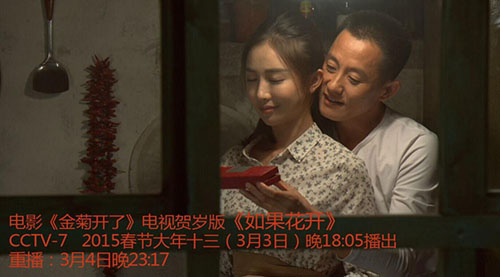 电影《金菊开了》于去年拍摄,今年的3月3日18:00其电视贺岁版《如果花开》将在CCTV-7农业节目播出。届时欢迎广大观众朋友们收看,一睹“硬汉”风采,静待花开的声音。