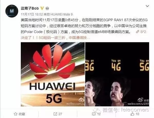 君不见,去年11月17日,在美国3GPPRAN 187次会议的5G短码方案讨论中,经过艰苦卓绝的努力和万分残酷的竞争,中国华为公司的Polar Code(极化码)方案,打败了来自美国的LDPC方案、法国的Turbo2.0方案,最终成为5G控制信道eMBB场景编码最终方案。