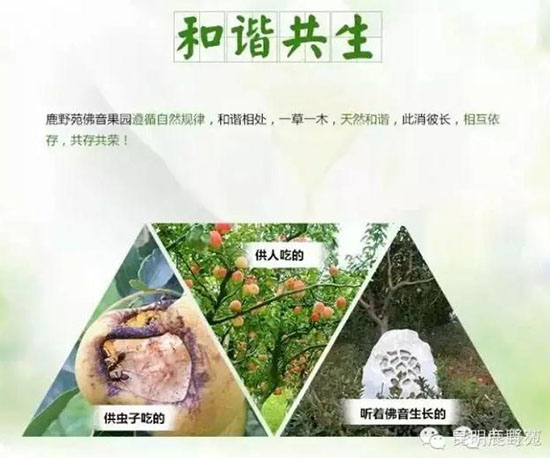 在昆明郊县嵩明,有一个令人尊敬的自然农法果园——鹿野苑。它用实践告诉我们,不用杀虫剂,自然农法种植的水果更好!1300余亩果园,48000余株满天红红梨,坚守无肥料、无耕起、无农药、无除草的“四无”农法。以增强地力为基本要素,目的是希望提高作物品质的高营养价值、安全性以及劳动生产性和土地生产性。通过自然的调解能力,平衡和培育土壤,以形成正常的生物循环,重新找回原有的生活史。