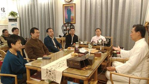 2016年4月20日(晚23:00),山西和佳房地产开发有限公司曹太生董事长引领三位各领域的企业家代表,来参加本次《大健康时代良机与挑战企业家高峰论坛》。课程结束后一行四人赶忙来到茶室与彭措校长会谈做大健康资源对接。